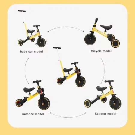 Kids Baby 3 in 1 Tricycle With Pusher Reinforced Carbon Steel Frame Bikes Boys Girls Bike Children Toddler Walking Balance Bicycle