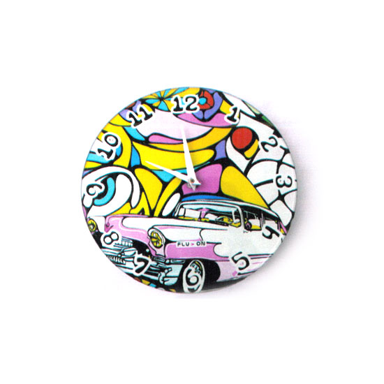 This is a kids' clock in a round shape with two hands. Its dial is printed with sophisticated cartoon patterns in bright colors for added cuteness. This clock is a great addition to kids' rooms.