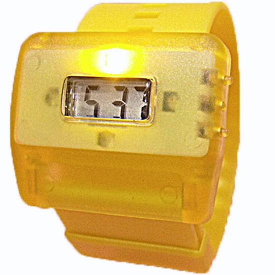The digital watch has a plastic case and wide PVC straps. It boasts a digital display with LED flashing light for added fun. The vibrant yellow design adds a unique touch, making this digital watch a great item to enhance your kids' closet.