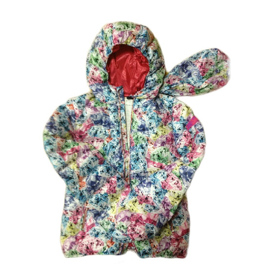 This is a kids' down coat with a colorful finish. The zipper front closure allows kids to throw it on with ease. It is made of top quality down to offer ultimate lightness and superb insulation.