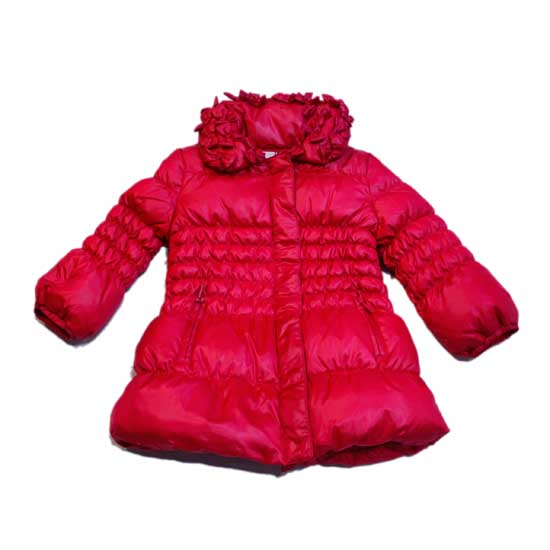 This sweet down jacket delights little girls with tiny ribbon bows on the hat. Elastic detail on the body and the sleeves keeps the wearer warm. This beautiful down jacket is a comfortable and flattering choice for winter.