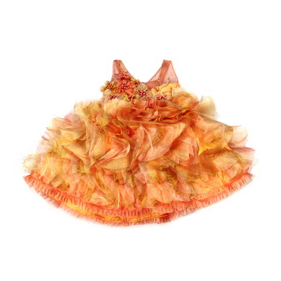 This deluxe sleeveless dress for kids is made of organdy silk for a chic touch. It is adorned with beads and flower decorations for a grand look. This orange dress is sure to make your little one a charming star.