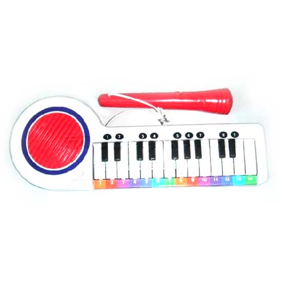 This electronic keyboard comes with a red microphone, which sets it apart from others. The musical instrument features a clean design in white color with a red speaker. The number indications of rainbow colors below the keys let children master the instrument easily.