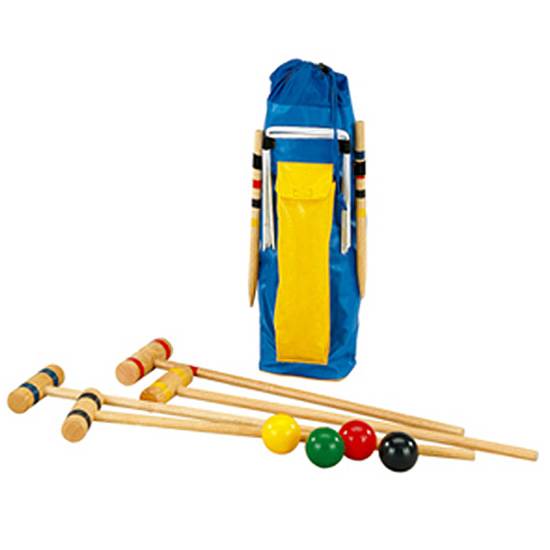 The kids' golf set features 4 golf clubs and 4 golf balls in different colors. They are packed in a golf bag for better storage and carrying. Play a mini golf game in the back yard with this kids' golf set.