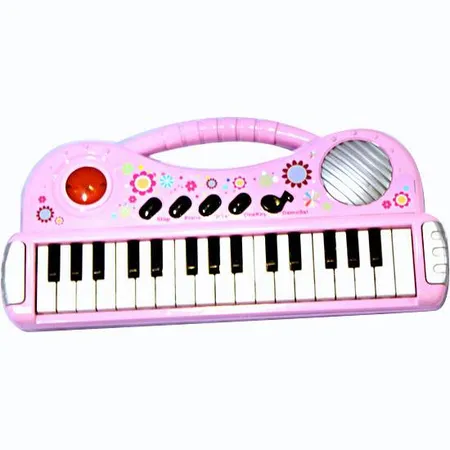 Featured here is a kids' keyboard in cute design. The body is artistically embellished with flowers. It features a light on the left which appeals to kids and offers added fun. By pressing the "demo" button, the keyboard will play various music pieces, which help kids learn to play with the keyboard.