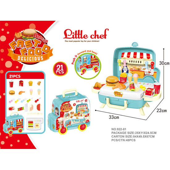 ★【Educational Toy】fast food cart toy will explore a range of life lessons and educational topics with your baby and encourage their imaginations. Designing and sharing their own play food creations lets your child develop creativity, fine motor skills, social skills, and problem solving.
