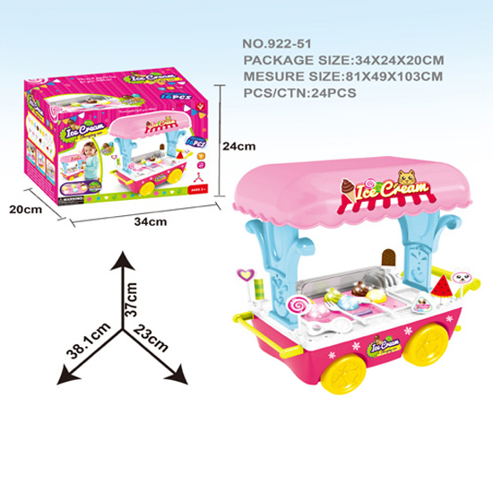Kids Pretend play ice cream cart With Light & Sound Children Play set Dining car Plastic