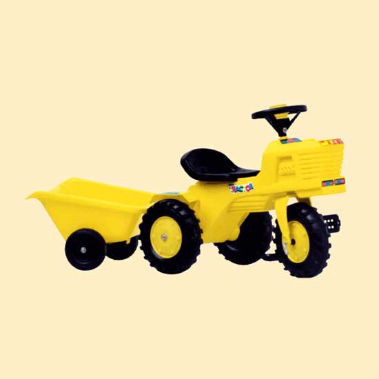 Showcased here is a kiddie car modelled after a tractor-trailer. The rugged wheels make it possible to travel on irregular surfaces. Fitted with an ergonomic seat, comfortable sitting experience is also ensured.