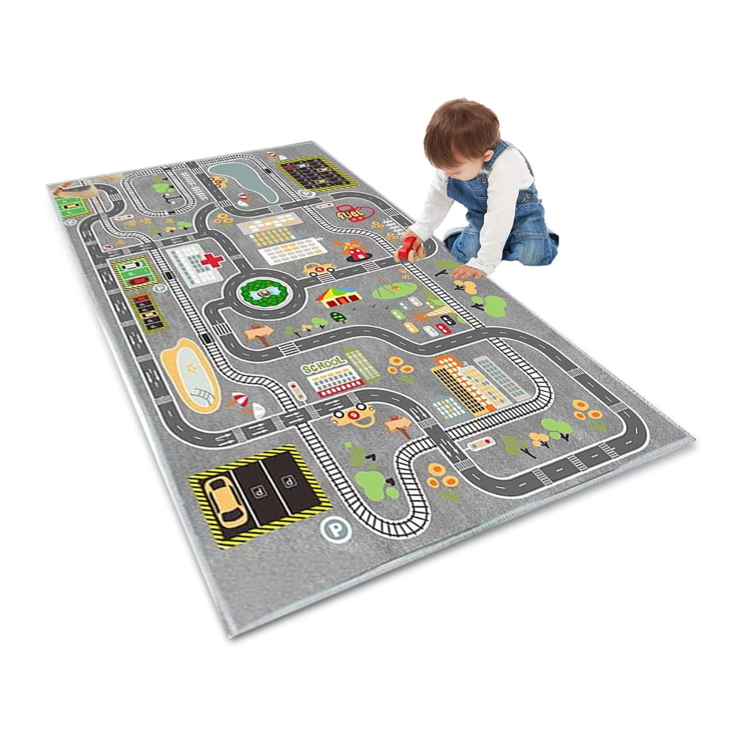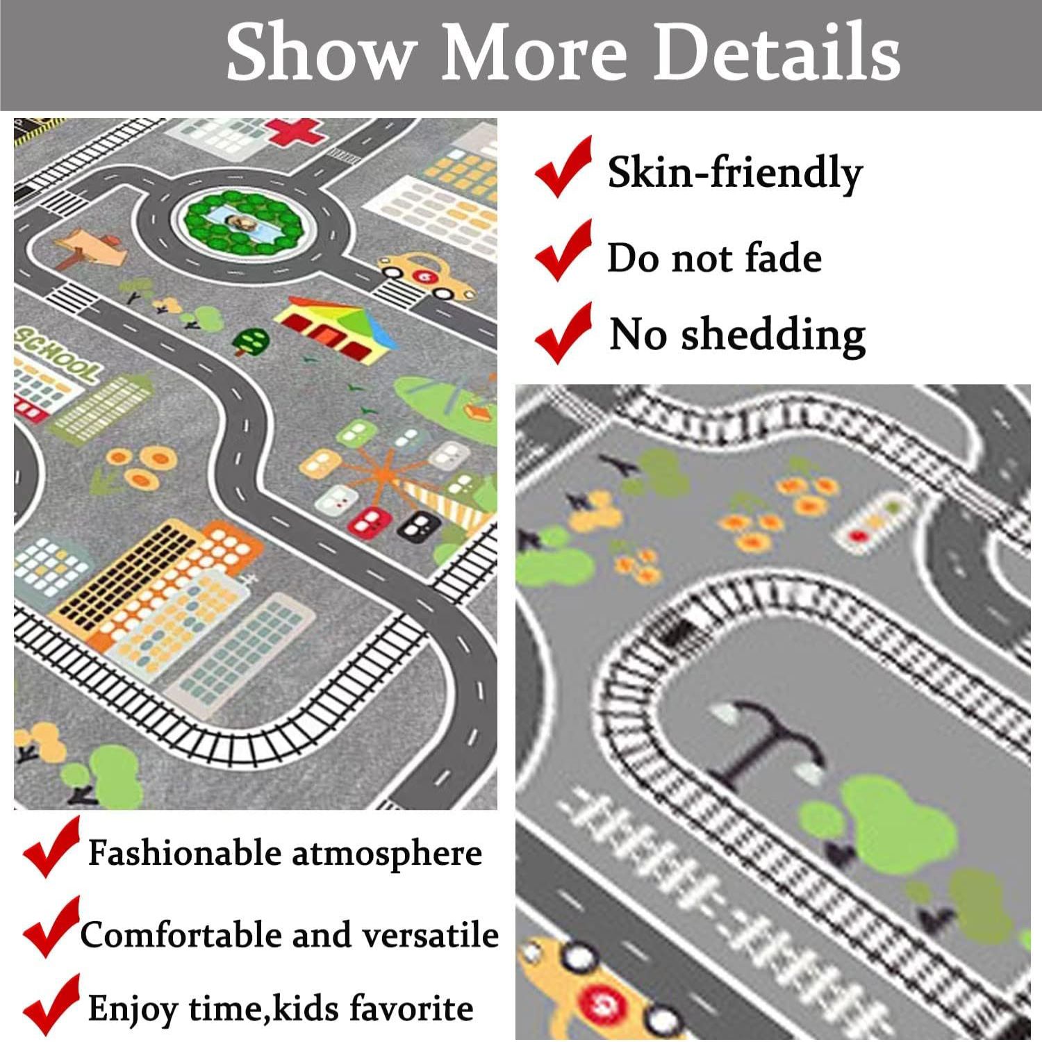 MATERIAL: Skin-friendly fabric made of high quality crystal velvet, durable and healthy and environmentally friendly. The play rugs in this collection have city or street themes that can stimulate children's imagination and bring fun and play to your child's room