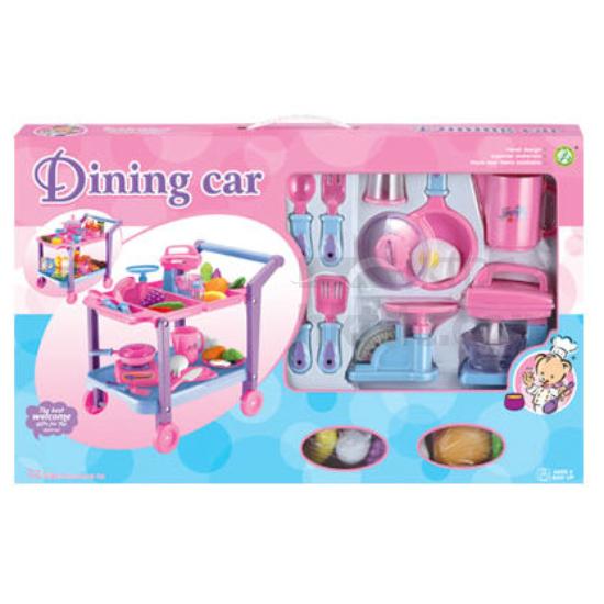 Presented to you is a fun restaurant playset that is designed for children. This playset comes with an eye-catching trolley and various kinds of food for added fun. This shopping trolley playset is made of fine-quality PU material for enhanced durability.