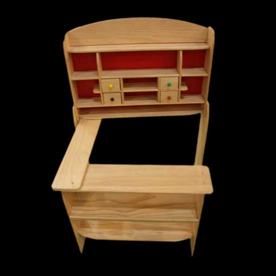 The kids' table is made of tasteless and non-toxic wood in natural color. The table offers various compartments and drawers for storage. Children are surely delighted to place their favorite toys into it for hours of entertainment.