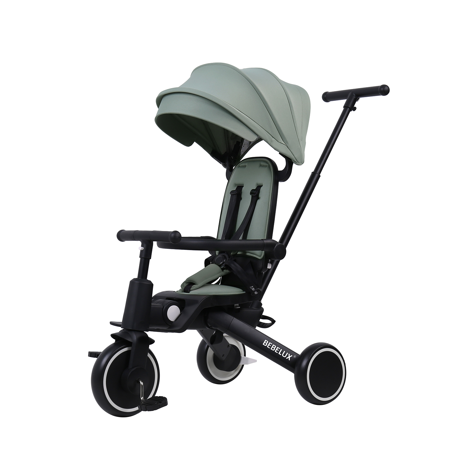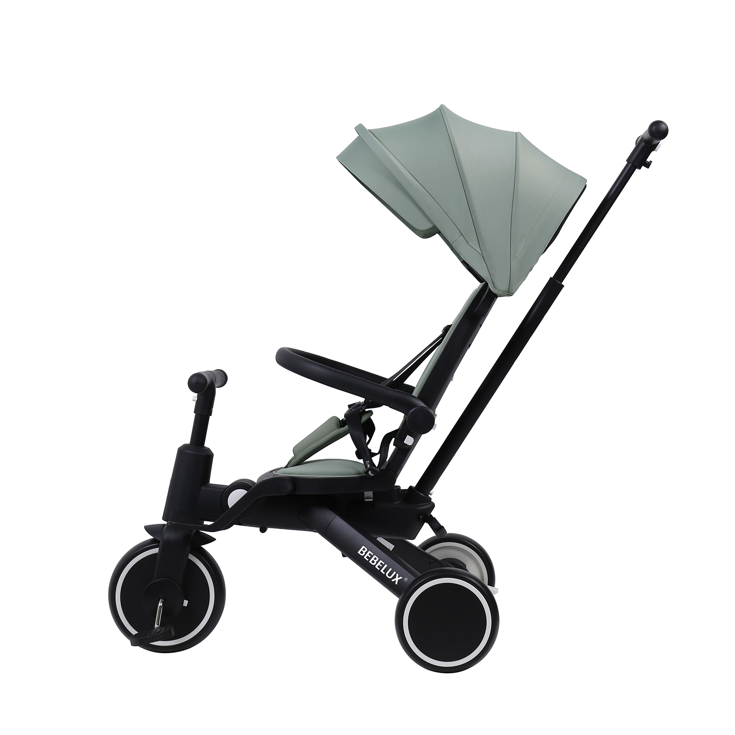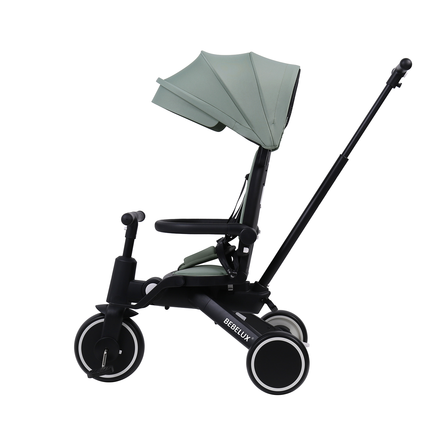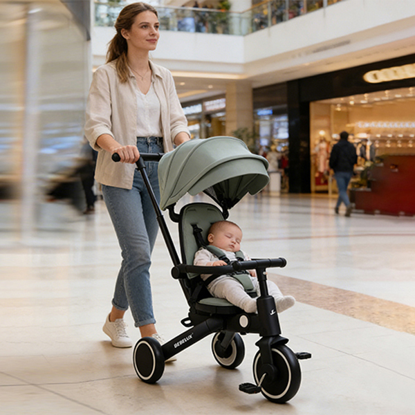 The BEBELUX Kids’ Tricycle is a multifunctional ride-on solution designed for toddlers and children aged 10 to 48 months. Its 8-in-1 modular design supports multiple riding modes — including push tricycle with canopy, push balance bike, tricycle, balance bike, and bike mode with parent steering handlebar — tailored to each stage of early childhood development.