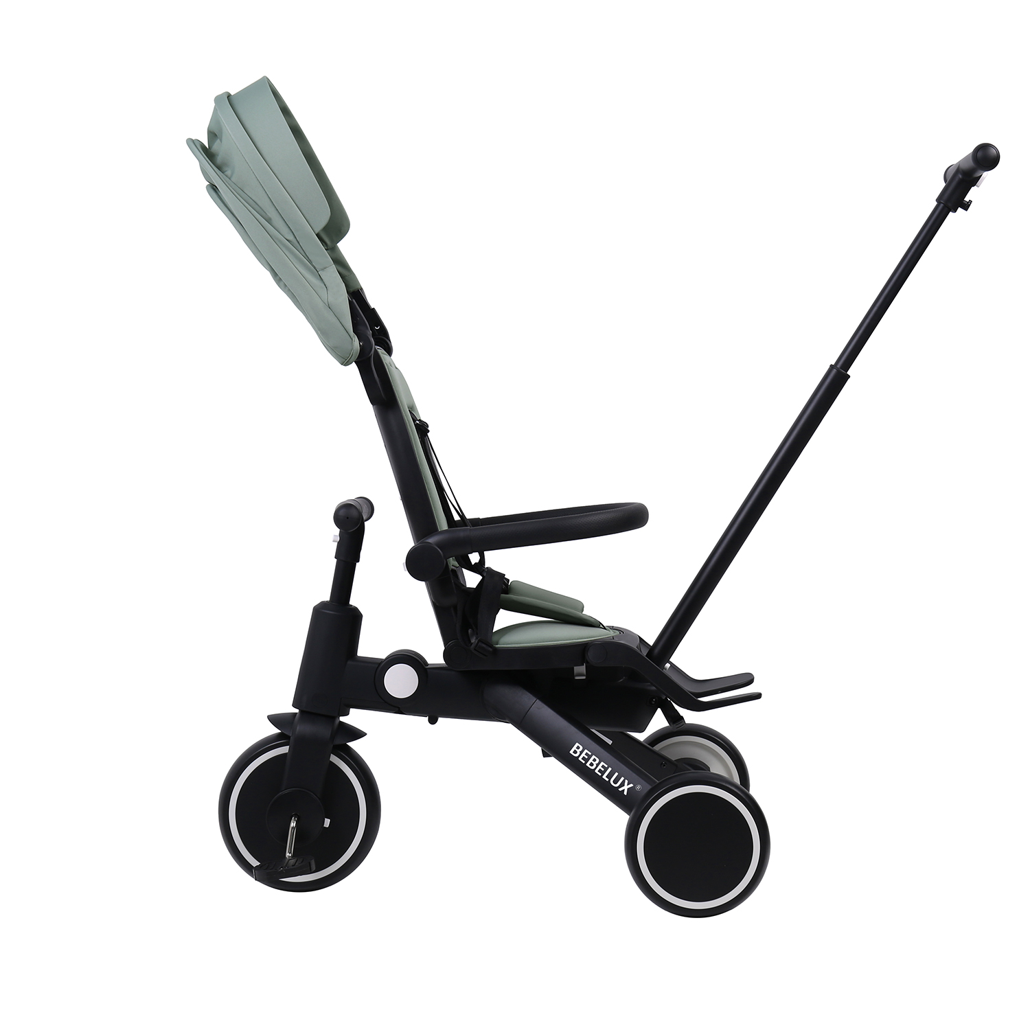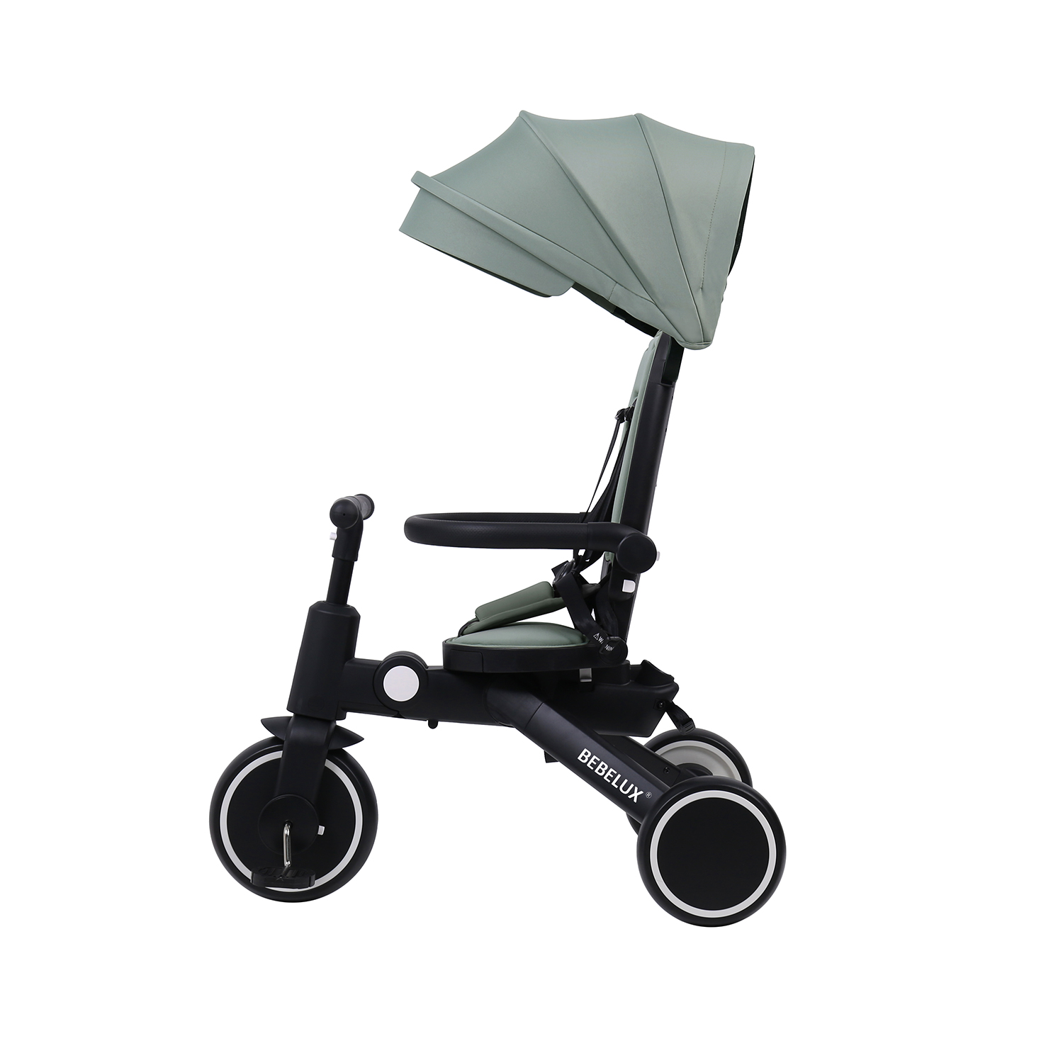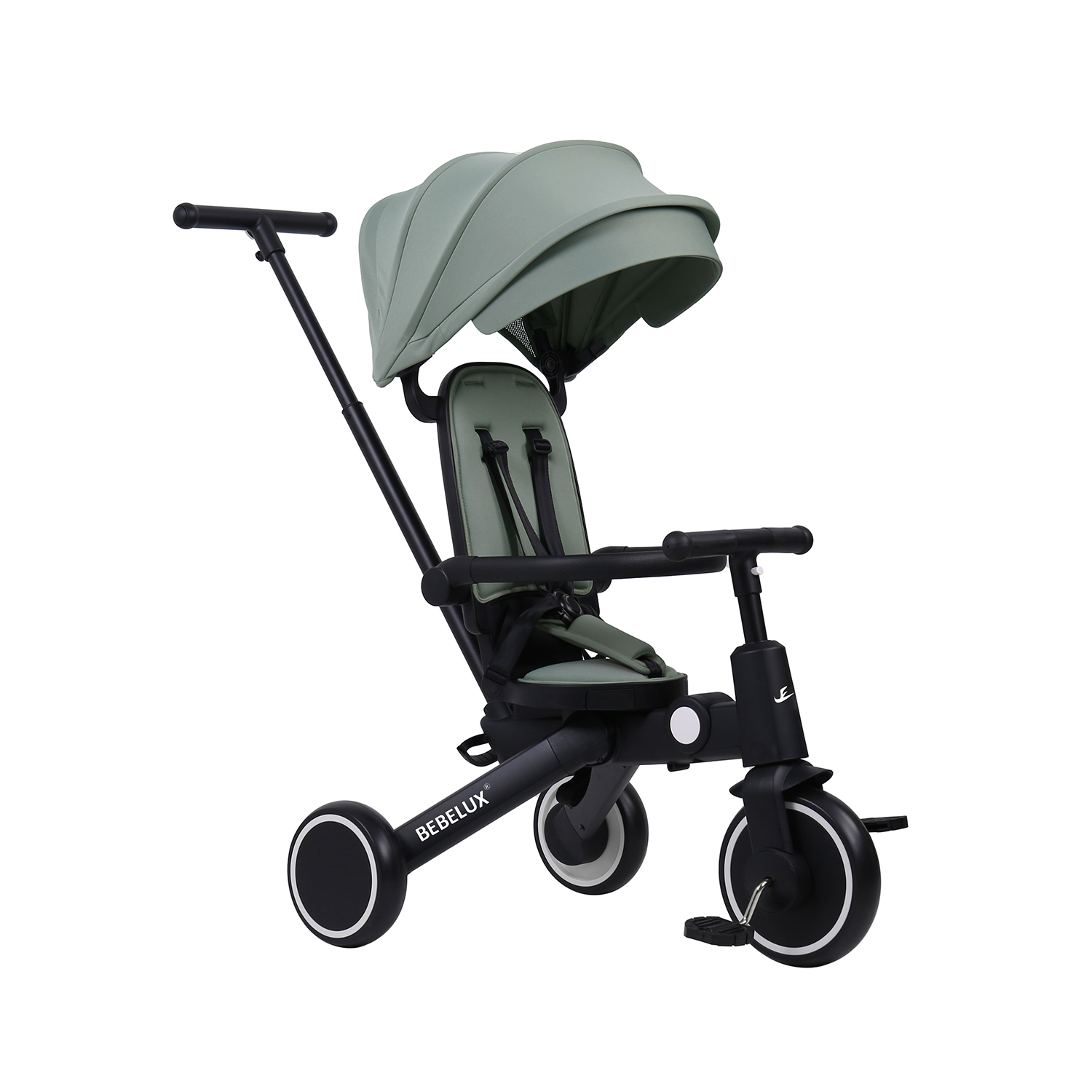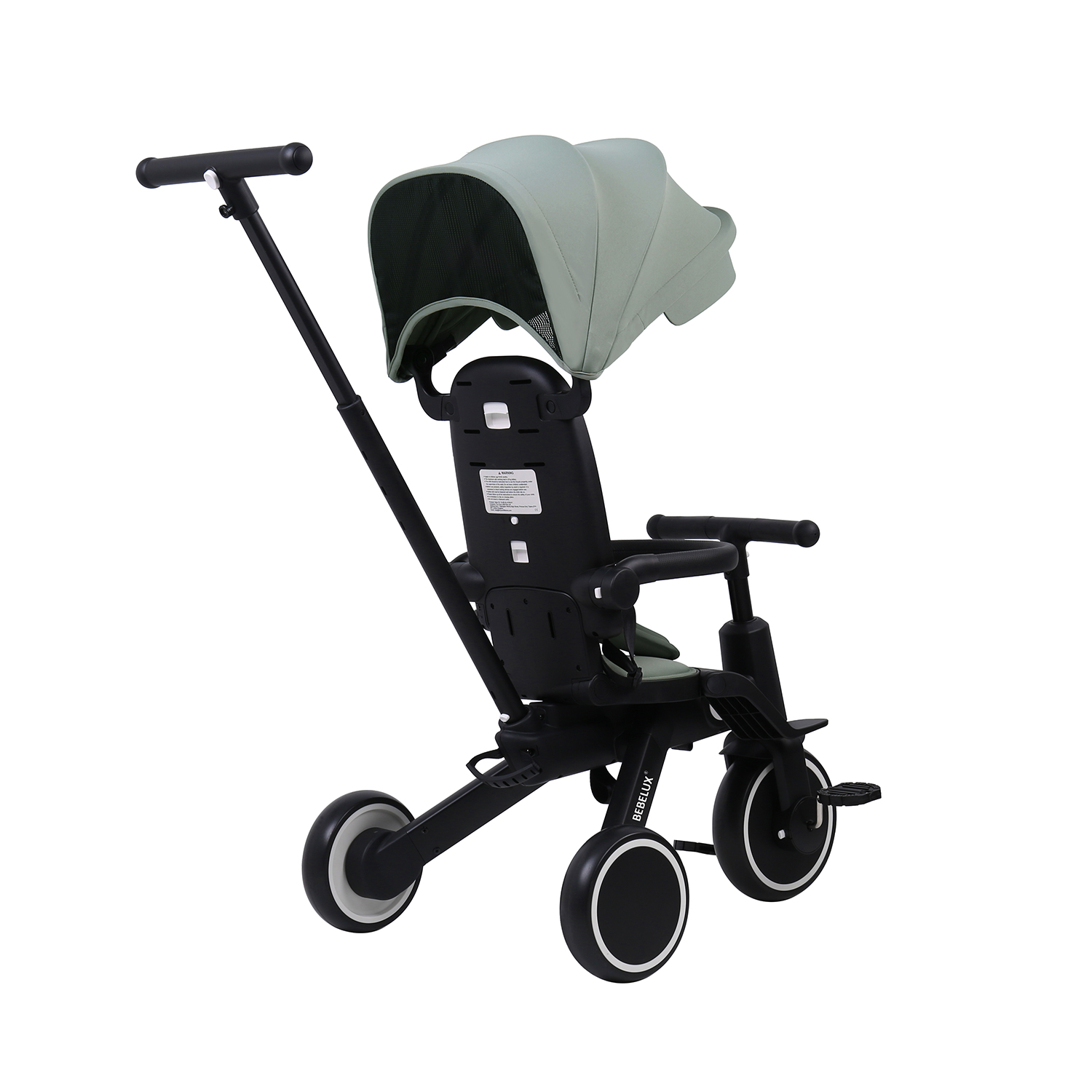 The BEBELUX Kids’ Tricycle is a multifunctional ride-on solution designed for toddlers and children aged 10 to 48 months. Its 8-in-1 modular design supports multiple riding modes — including push tricycle with canopy, push balance bike, tricycle, balance bike, and bike mode with parent steering handlebar — tailored to each stage of early childhood development.