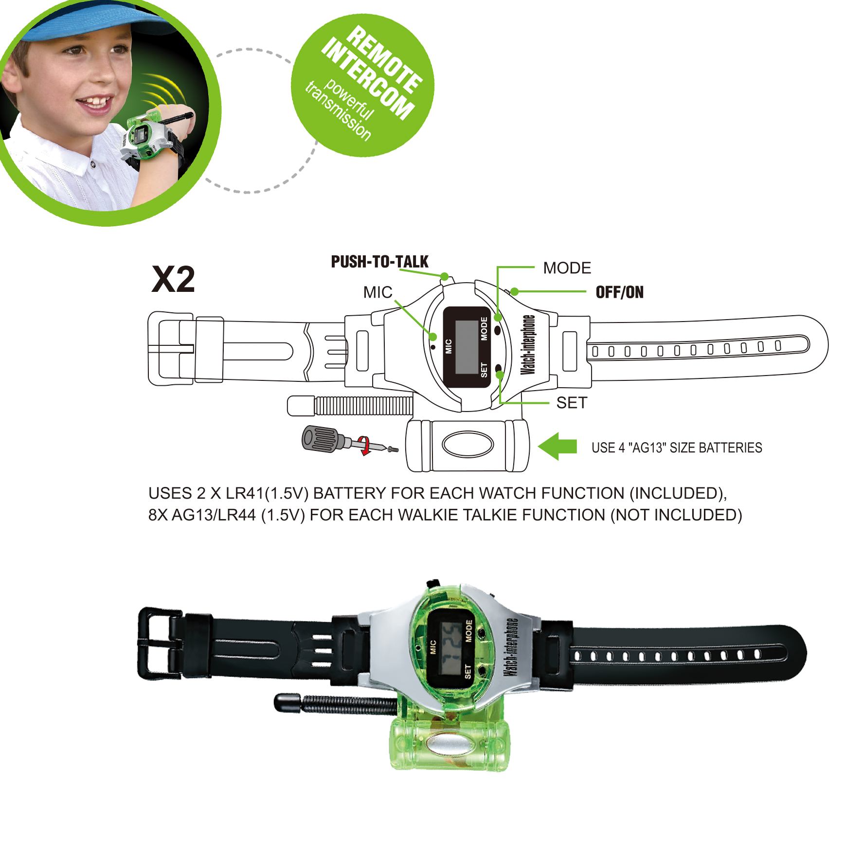 Long Range and Fun Style: Have been through tests for the range, normally it keeps continuous talk from 40 meters up to 50 meters. Not only walkie-talkie, but also watch with adjustable band, LCD screen display real time. Extendable antenna make the transmission distance longer and sound clearer.