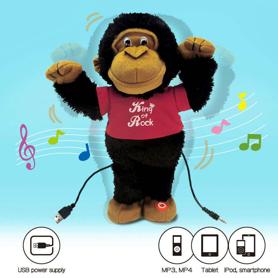 A dancing speaker in standing plush gorilla design