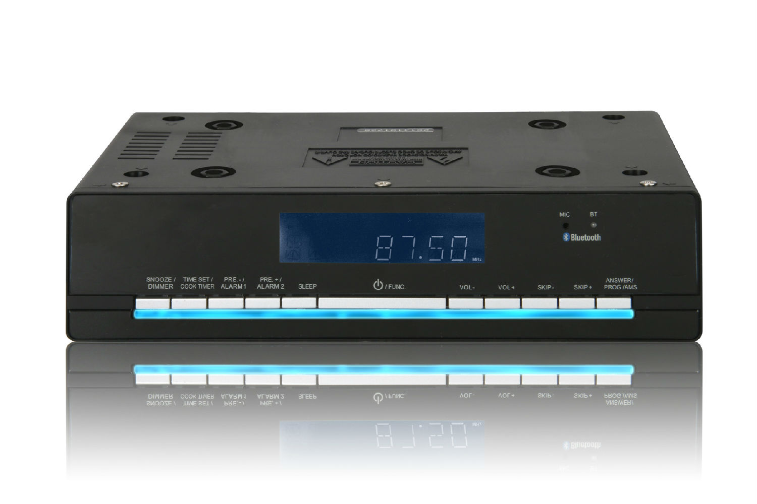 -Build-In Bluetooth Audio Streaming -Build-In Bluetooth Hands-Free Answering Function -Large LCD Display with Backlight -PLL Tuning Radio, FM Only -20 Preset Stations -Automatic and Manual Search for radio Stations -AMS (Automatic Memory Stations) -Dimmer Control -Dual Alarm -Wake-Up Function to Radio and Buzzer -Snooze Control -Cooking Timer (Up to 180mins) -Sleep Timer -Clock Set in 12/24hr Selection -Glossy PVC Front Panel -Time Backup (By Using CR2025 Battery) -Mounting Materials Included (4pcs Capsule & 4pcs Screw) -4pcs Rubber Feet Provided for "Table Top" use -Build-In High Performance Mono Speaker -Output Power:1x1W