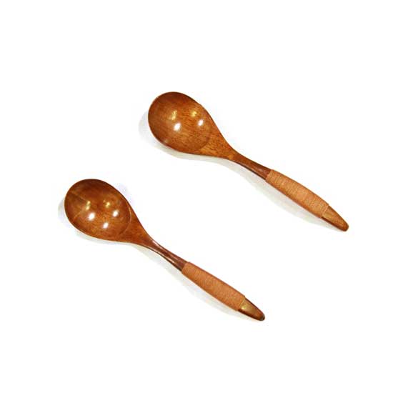 This is a kitchen spoon with a classical and simple design. It is made of high-quality wood in a natural color. The handle is crafted with a jacket for users to hold easily and firmly.