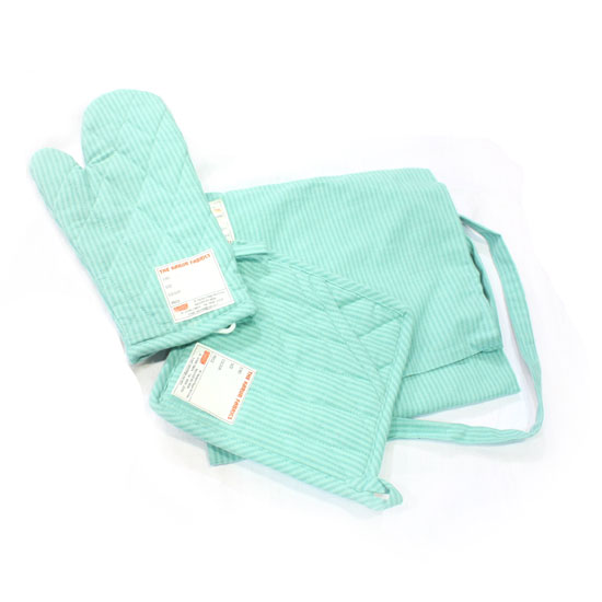 This 3-piece kitchen textile set includes an oven glove, a pot holder and an apron. The blue-colored kitchen textile set is made for 100% cotton for added comfort and softness. This functional kitchen textile set is an essential accessory for every modern kitchen.