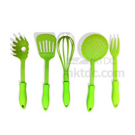This 5-piece kitchen tool set comes with a brilliant green appearance for attractiveness. They are made of nylon  for durability and sturdiness. The ergonomic handle promises a comfortable grip for users.