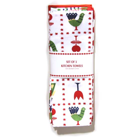 This kitchen towel features cute printed patterns. The design looks exceptionally pleasant in a combination of red and white. The cotton material ensures high durability for household use.