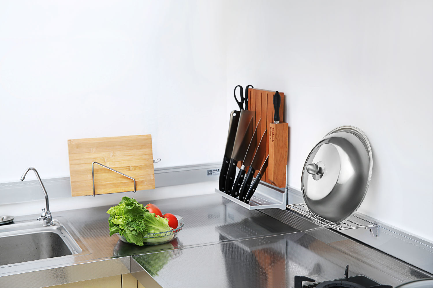 Through-groove and drainage hole let water be drained entirely, which prevents molds staying on knife rack and knifes, and protects family’s healthy