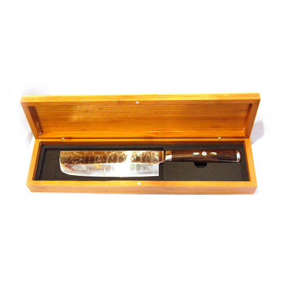 This knife series comes with a high-quality wooden case for added protection. The wooden handle is ergonomic and allows you to hold it comfortably. This knife series is a nice choice for both personal and professional uses.