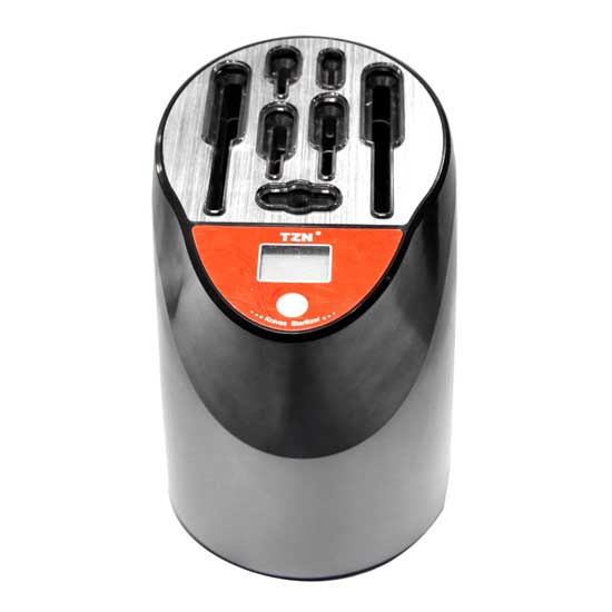 This functional knife sterilizer can effectively kill bacteria on your knives. It is designed with seven knife holders to accommodate knives of different sizes. The knife sterilizer is designed with a digital display and a button for easy operation.