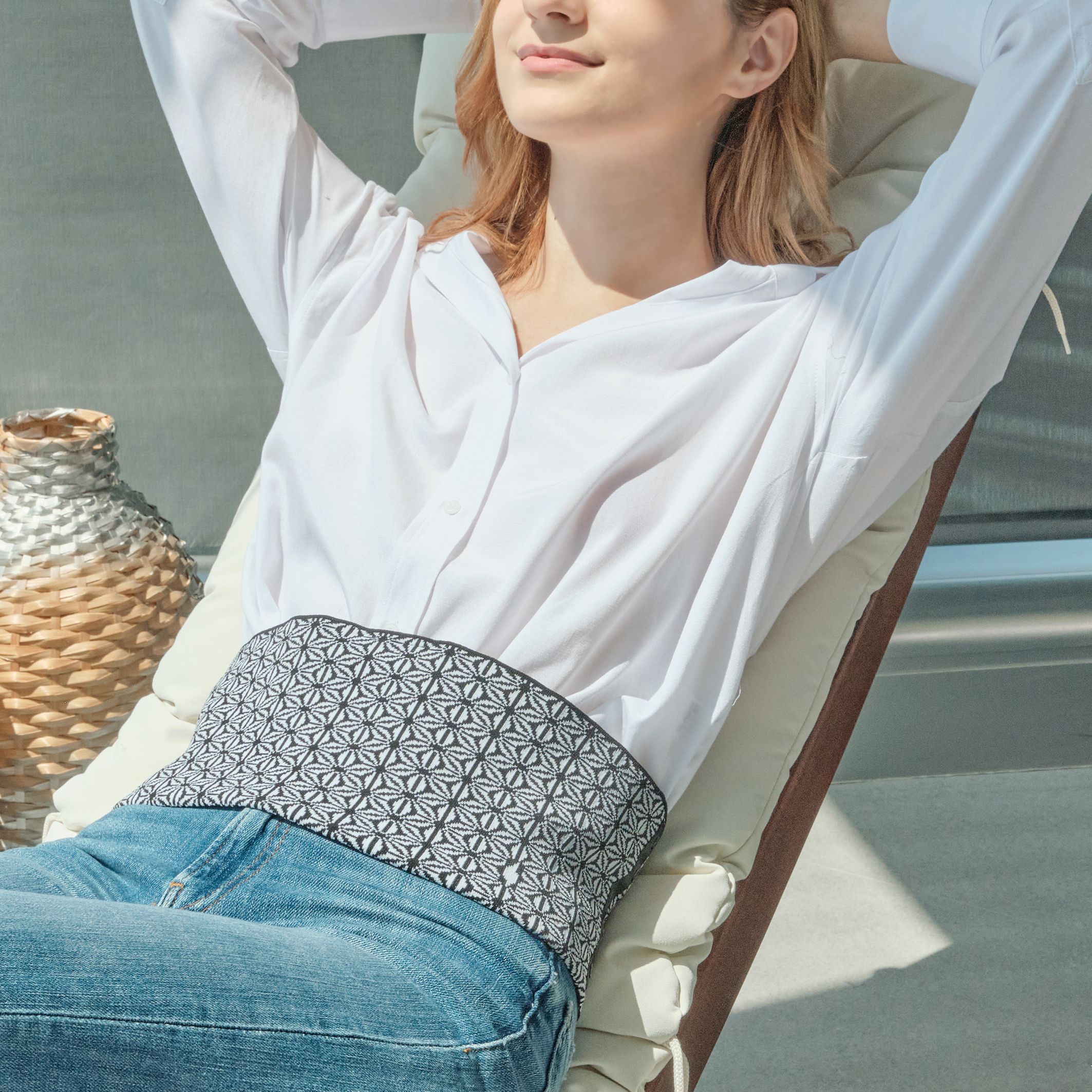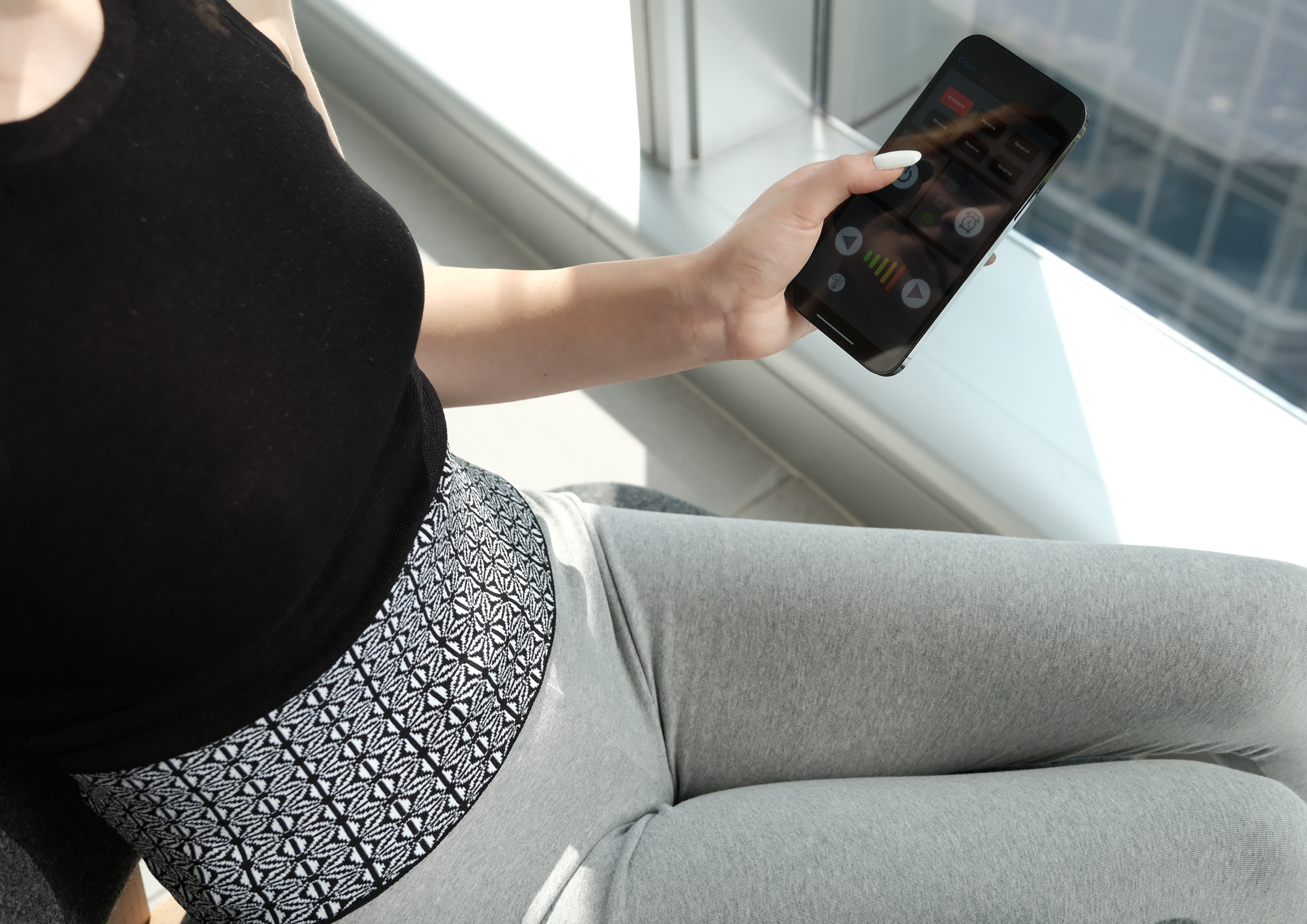WarmerBand, a soft and breathable accessory delivers gentle warmth when plugged in to soothe your pain. Whether you're struggling with low back pain or abdominal discomfort, our WarmerBand is designed to provide a safe and sustainable solution that improves your blood circulation and elevates your overall well-being. Seamlessly crafted with environmentally responsible materials, the WarmerBand is a fashionable accessory that fits comfortably around your waist and can be controlled with ease through our smartphone app. Its sleek design and lightweight construction make it easy to carry around with you wherever you go, giving you peace of mind.