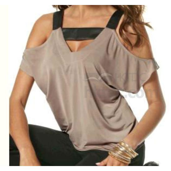 Black leather details add an edginess to this knit top with keyhole neckline and sexy shoulder cut-outs.