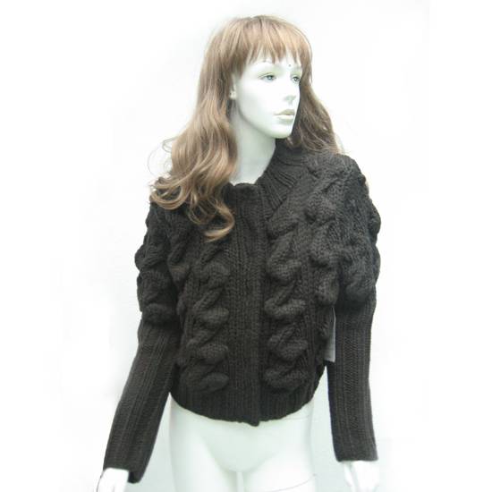 As shown is a knitted cardigan for ladies. This knitted cardigan is best for casual or formal wear. With wave patterns, the sleeve and chest parts of this knitted cardigan look stylish and smart.