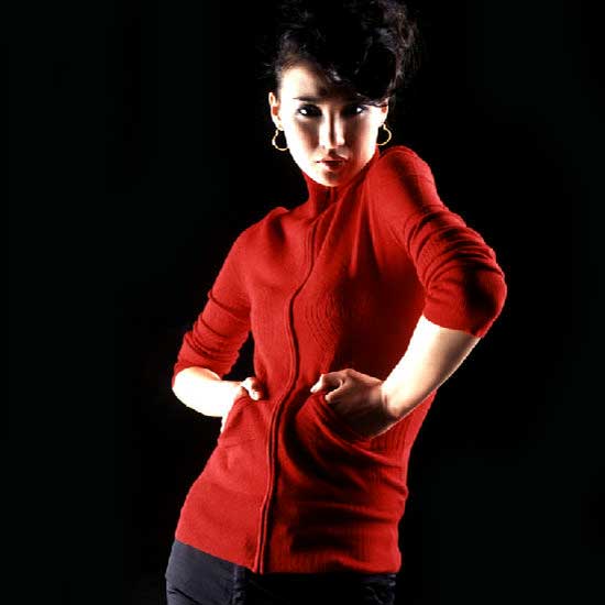 This ladies' red cardigan features a turtle neck and a zippered front. The chic cardigan can easily create a casual winter look. Two side-entry pockets finish the design of this piece.