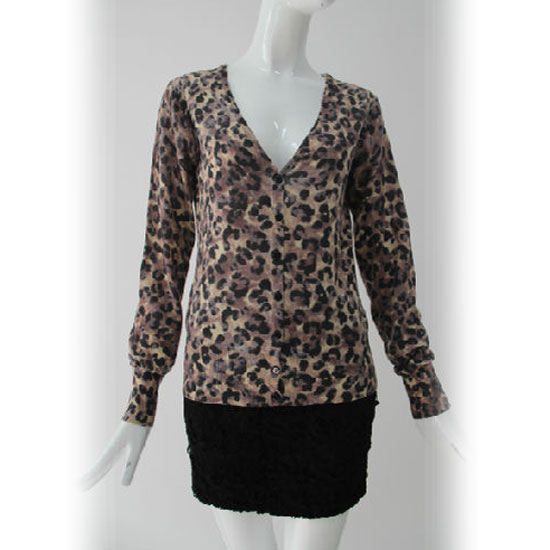 This knitted cardigan comes with fashionable leopard patterns. With a deep V-neck, this cardigan brings out feminine flair. The front button design is convenient for daily wear.