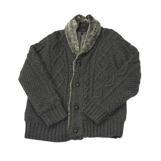 This knitted cardigan is specially designed for men. It features long sleeves, a button-up closure and a fur collar. This men’s cardigan is made of 100% wool to ensure wearing comfort and warmth.