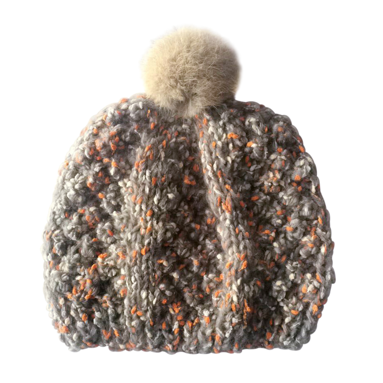 100% Acrylic mohair+special yarn beanie w rabbit fur pom