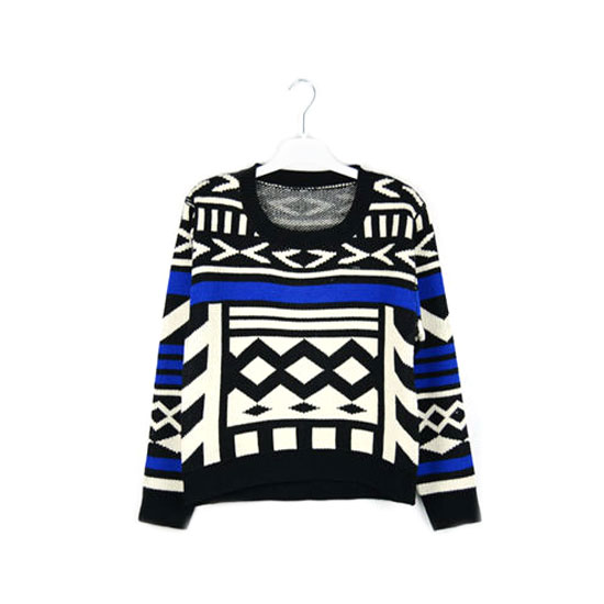 This knitted jumper comes with an eye-catching and fashionable design. This jumper is designed with abstract patterns in multiple colors that catch your attention easily. This knitted jumper features long sleeves and a round neckline.