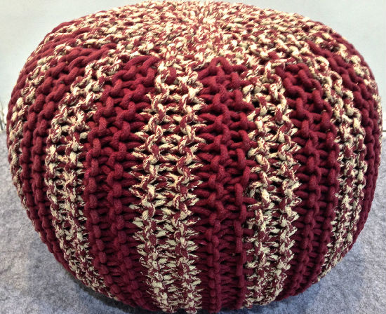 This knitted pouf offers exquisite style and comfort. The pouf is knitted from 100% cotton and filled with beans. It makes a wonderful addition to your living space.