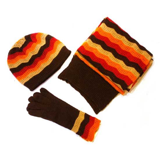 Presented here is a knitted garment set that is well made of lamb wool and nylon for luxurious warmth. This set of products includes a beanie hat, a scarf and a pair of gloves. Add a stylish touch to your winter look with this set of products.