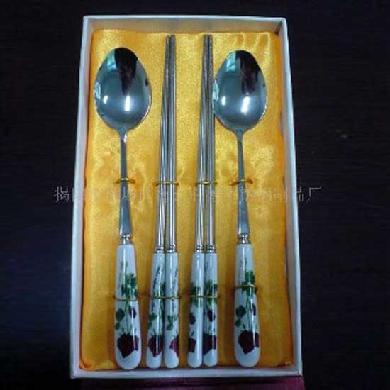 This exquisite Korean tableware set includes two spoons and two pairs of chopsticks. The smooth white ceramic handles are adorned with beautiful flower and leave patterns. The elegant Korean tableware set makes a perfect gift choice for any occasion.