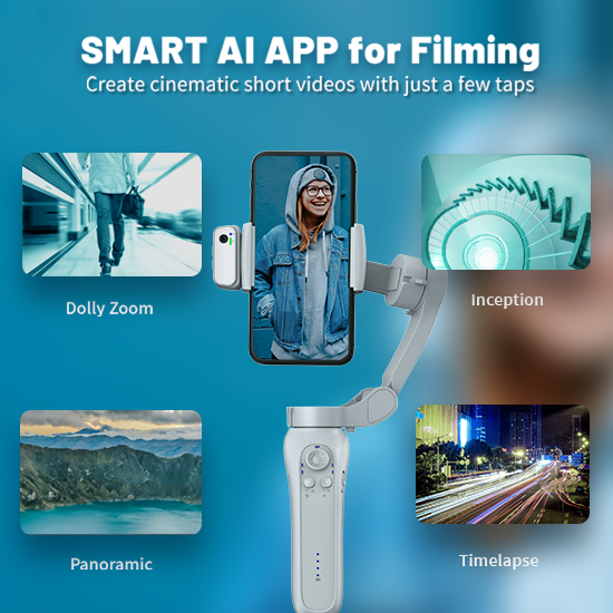 • 14.Foldable 3-Axis Handheld Phone Gimbal for Video Recording Face Tracking