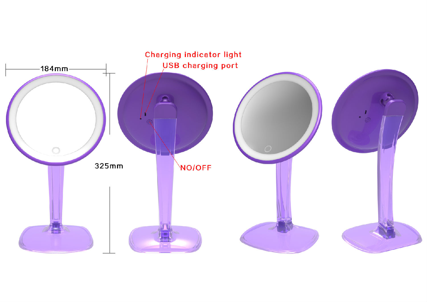 Featured here is a LED bathroom mirror for makeup use. It can support up to 10X magnifying and has adjustable height. The mirror comes in a round shape and has an on/off button at the back for control.