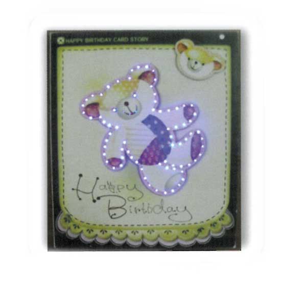 The birthday card boasts an adorable bear design. It is decorated with LED lights for add style and a touch of uniqueness. Your friend will be graceful receiving this lovely card.