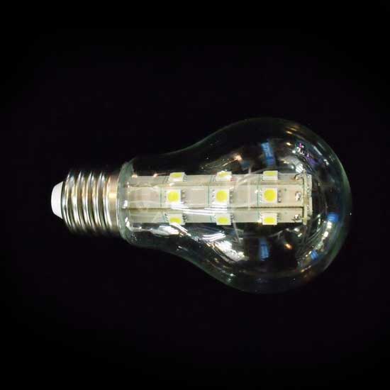 Featured here is an LED bulb serving an average lifetime of 30,000 hours. It yields high lumens with relatively low power consumption when compared with conventional incandescent lights with equivalent brightness. This LED bulb is great for general lighting.