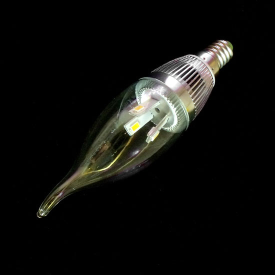 This candle-shaped LED bulb is an energy-saving and environment-friendly replacement for the incandescent bulb. It operates with low power and has a long lifespan. The delicate candle shape can cooperate with any style of open lamp and lantern uses.