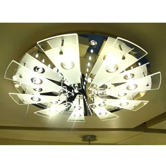 The finely made ceiling lamp flaunts an elegant design put together by crystal-clear glass and lustrous iron pieces. The sophistication and grandeur of the ceiling lamp promises to lend a luxurious vibe to a living room, ball room, hotel lobby, etc. Stunt your guests and keep them in awe with this lavishing ceiling lamp.
