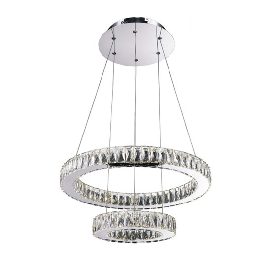 Displayed is a crystal pendant lamp coming with a dual-layered design. The K9 crystals are carefully selected and polished to offer ultimate sparkle and shine. It is widely applied to a broad range of household lighting applications.