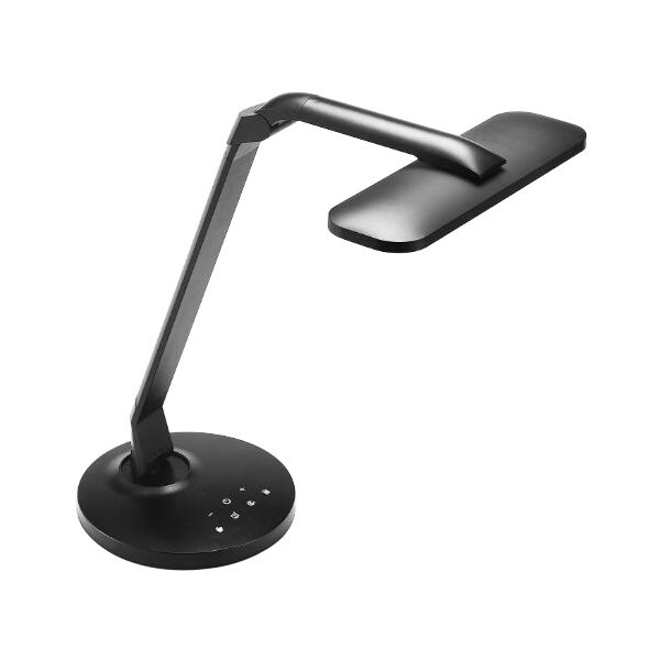 The structural contour of this LED desk lamp highlights a circular base with buttons, a slender neck and a panel-shaped head for a nifty look at work stations. It further provides cost-effective radiance with dimmable qualities to protect your eyes.