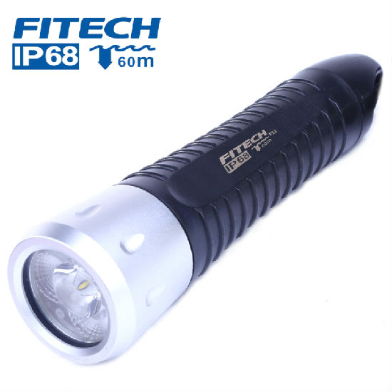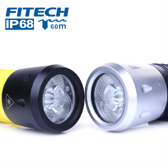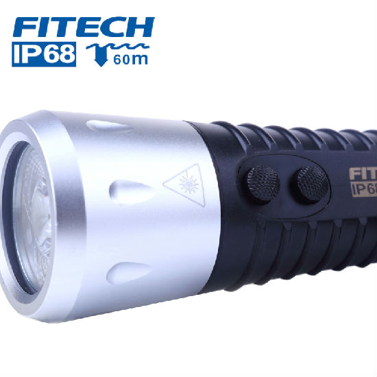 This high-power scuba diving flashlight of top quality comes with Cree LEDs for gratifying illumination. The watertight design enables it to work smoothly for up to 60m underwater. This reliable LED diving flashlight is powered by 3 rechargeable batteries.