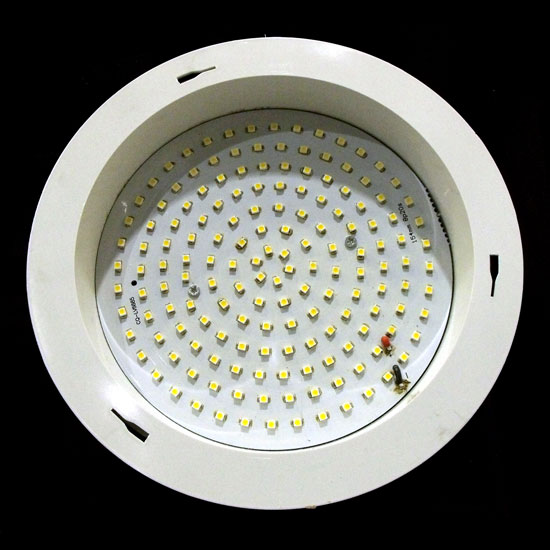 This LED downlight is fitted with 120 pieces of high-power 3528 SMD LEDs for exceptional lighting effects. Constructed of a waterproof plastic housing, the downlight can work in a damp environment. The energy-saving downlight can be widely used in commercial and household lighting projects.