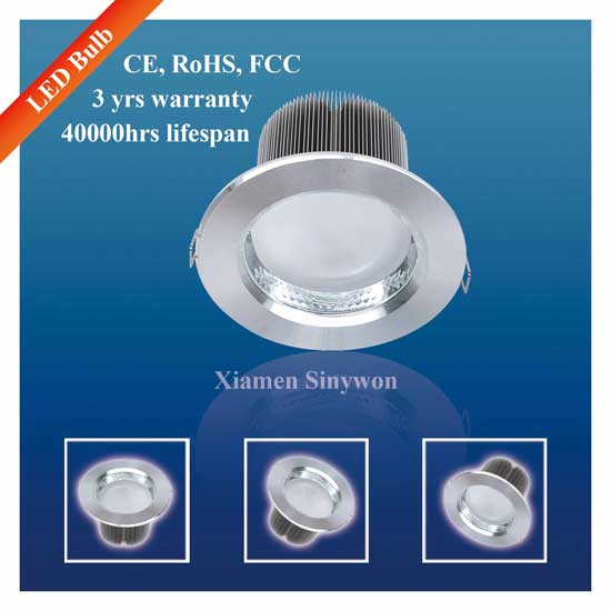 This LED downlight is a reliable light source for assorted commercial and household lighting projects. The long-lasting LED downlight boasts a lifespan of over 40,000 hours. Fitted with three pieces of LEDs, the downlight emits warm, natural or cold white light with a wide beam angle.