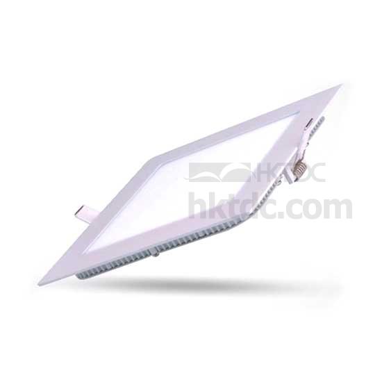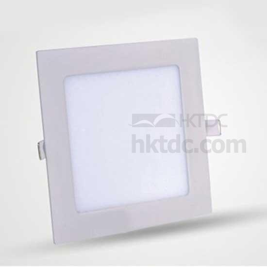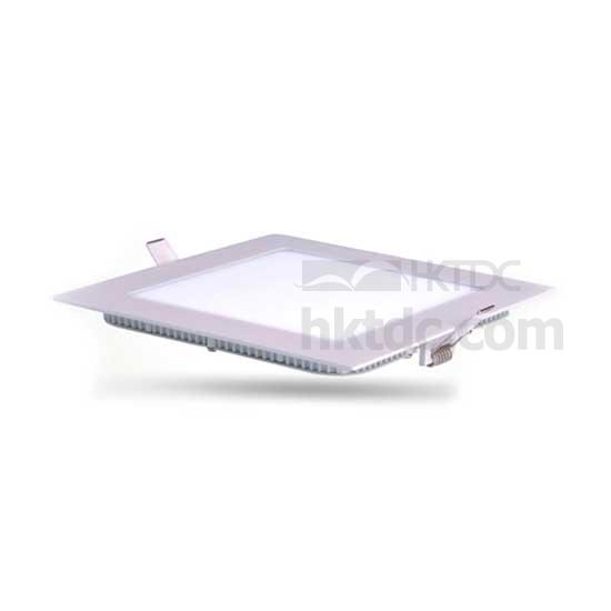 Displayed is an LED downlight that comes in the shape of a panel light. With a wide cut-out size, this square downlight uses high quality LED chips for bright illumination of up to 540lm. This energy saving downlight has a wide beam angle of 120 degrees and has a long lifespan of 50,000 hours.